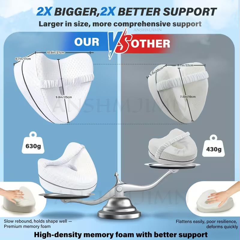 Sleep in comfort every night with the ANSHMJIMN Orthopedic Heart-Shaped Leg Pillow. Designed with a contoured heart shape, this memory foam pillow fits naturally between your thighs or knees, promoting proper hip and spinal alignment.