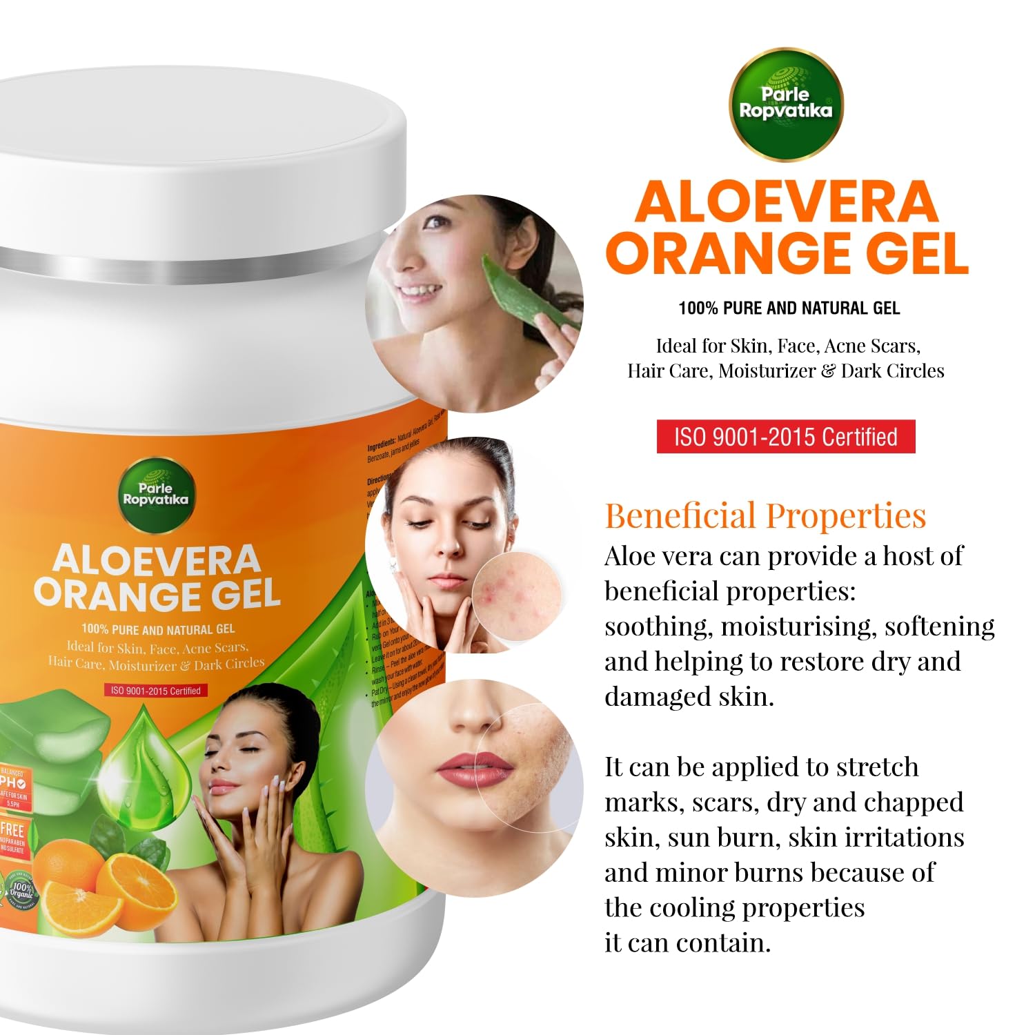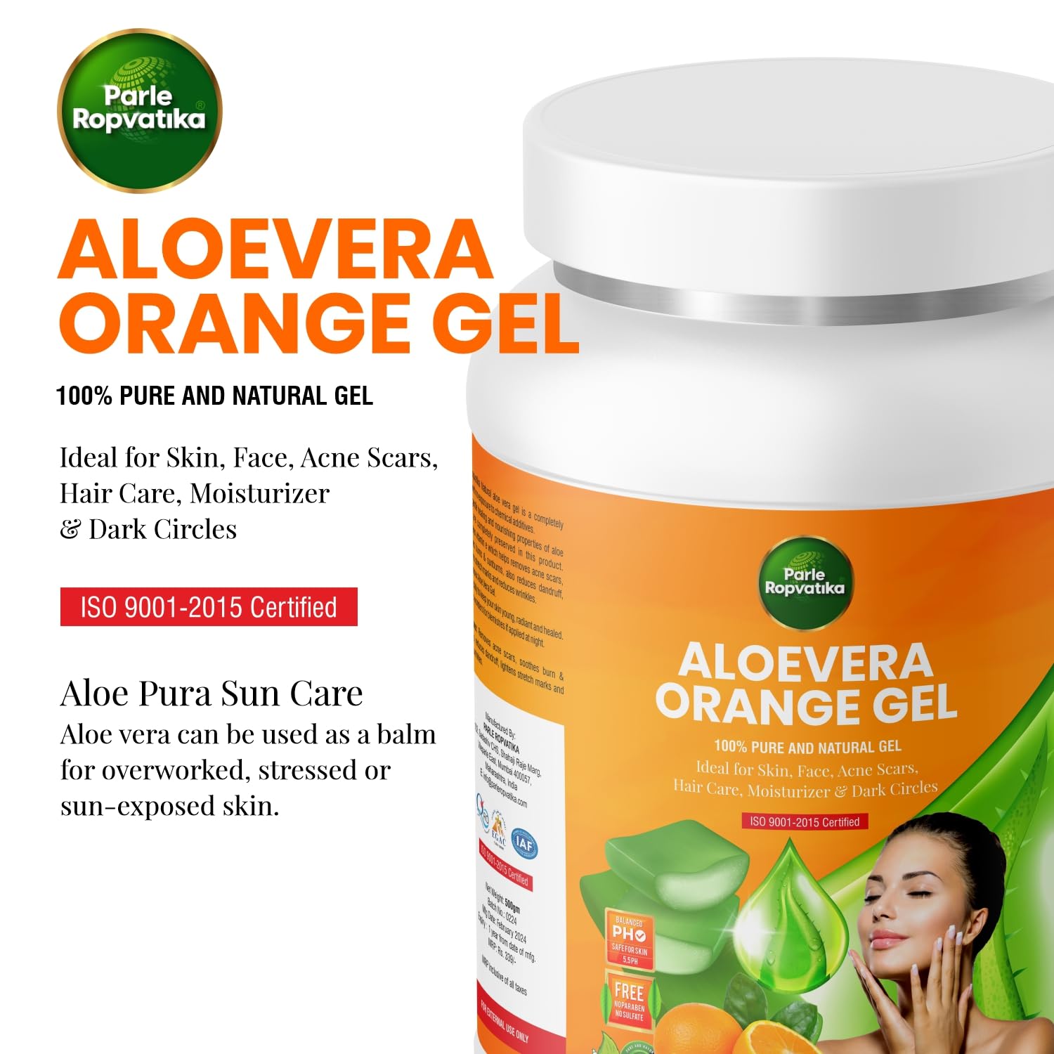 Parle Ropvatika Aloevera Orange Gel 500 Gram 100% Pure Natural Aloe vera Gel – Ideal for Skin, Face, Acne Scars, Hair Care, Moisturizer & Dark Circles (Aloevera Orange 500gm)
