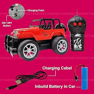 PARTEET 2 Channel Rechargeable Remote Control Jeep for Kids, USB Rechargable Off Road Vehicle Toy Cars for Kids Best Birthday Gift (Multicolor)