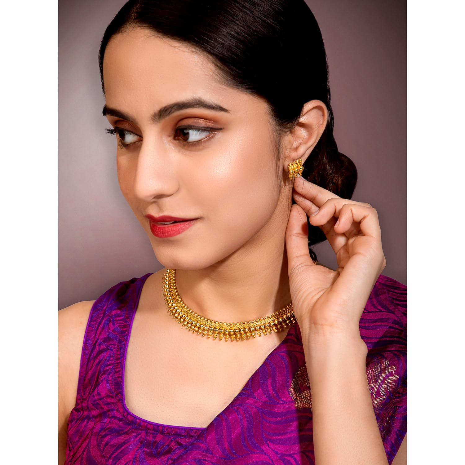Peora Gold Plated Elegant Indian Traditional Choker Necklace with Earring Jewellery Set for Women Girls