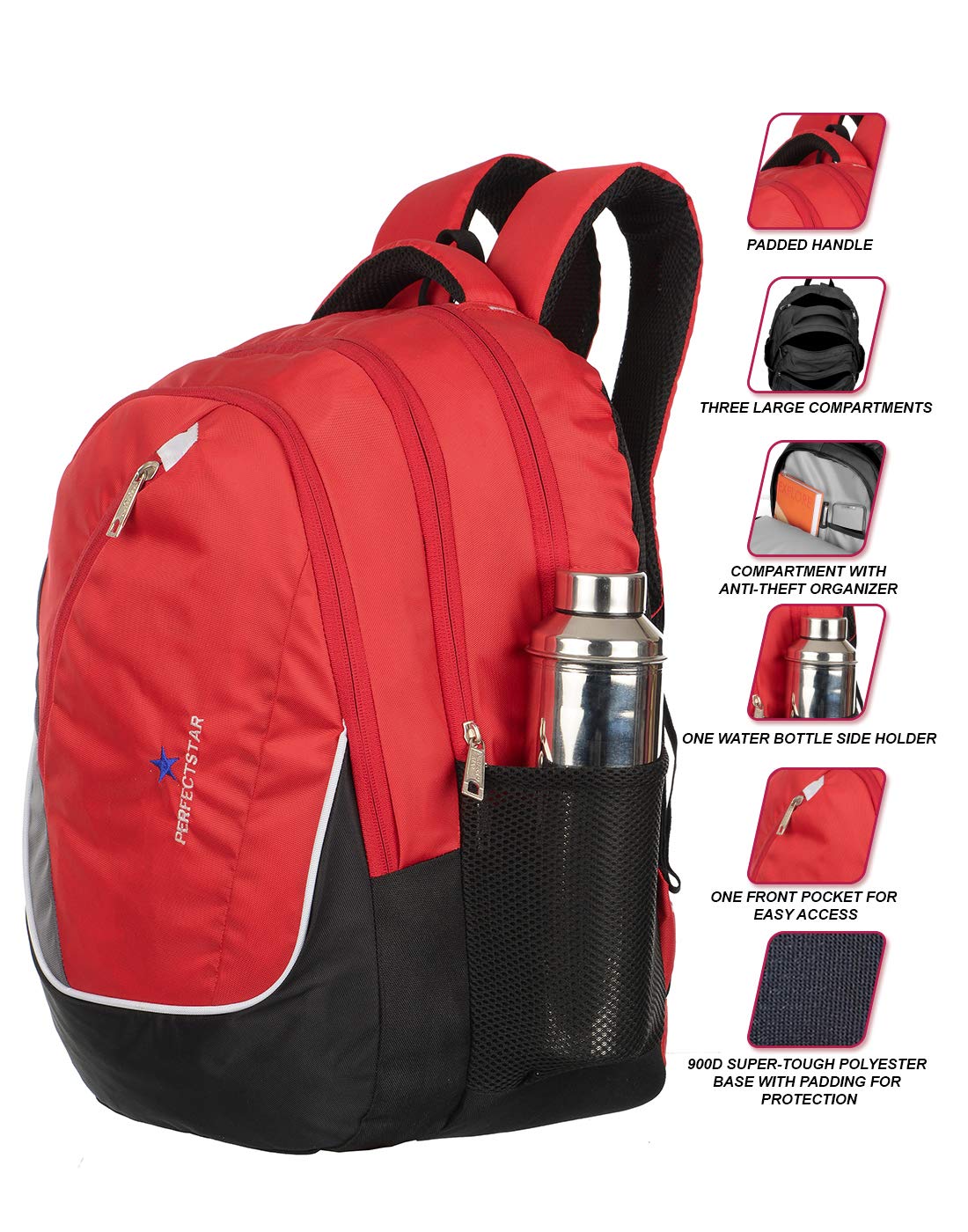 perfect star Casual Backpacks for men 15.6 -Inch Laptop Office School Travel Business Backpack (Red, Polyester)