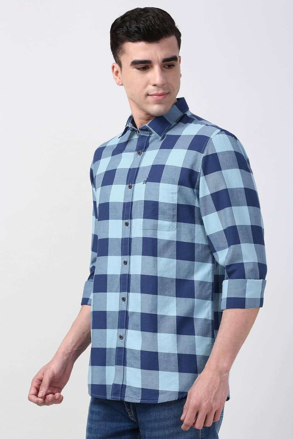 Peter England Large Checkered Cotton Shirt for Men – Full Sleeves, Smart Casual