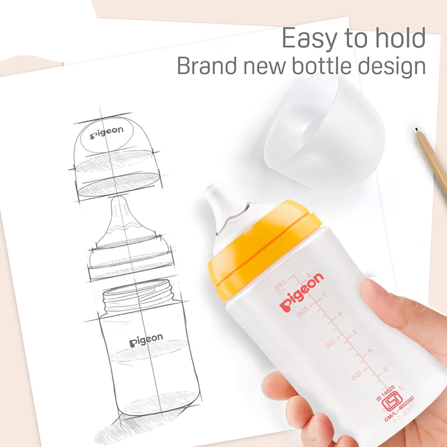 Pigeon Ease Wide Neck Baby Feeding Bottle with Medium Flow Anti Colic Soft Silicone Nipple BPA Free Wn3 Pp Nursing Bottle 160ml Plus Type Nipple-Yellow