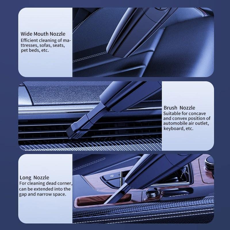 The car vacuum cleaner can be used anytime and anywhere, without going to a special car wash shop or using car cleaning tools.Car vacuum cleaners usually have stronger suction and can quickly remove dust and debris from the car in a short time. Save time and avoid tedious cleaning process.Most car vacuum cleaners are equipped with different types of suction nozzles and accessories, which can meet the needs of cleaning carpets, seats, trunk and other different areas.The vacuum cleaner for vehicles is small in size, and the suction head will be particularly small. It is also easier to clean the sewing and pedal pads in a narrow range.Mini Car Vacuum Cleaner High Suction For Car Wet And Dry Dual-use Handheld Vacuum Cleaner