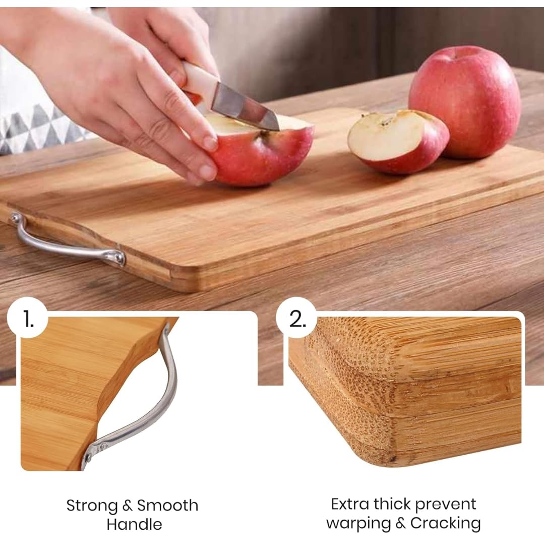 Durable Natural Bamboo Material Built from thick, high-quality eco-friendly bamboo wood that is resistant to cracking, warping, and moisture. Strong enough for daily chopping, yet soft enough to preserve knife sharpness.