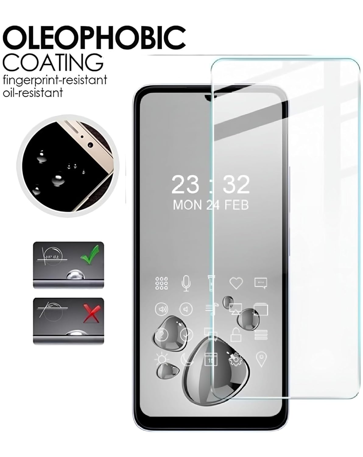 ✔ PRECISE LAZER CUT :- 9H Tempered Glass made with polished, rounded edges. 99.99% HD Clarity and Touchscreen Accuracy. Anti fingerprint Oleophobic Coating magically resists oils and reduces annoying fingerprints. This product is NOT exchangable for the Edge to Edge Ballistic Glass. Please purchase the correct item 99.22 High definition CLEAR hydrophobic and oleophobic screen coating protects against sweat and oil residue from fingerprints.High response, high transparency.