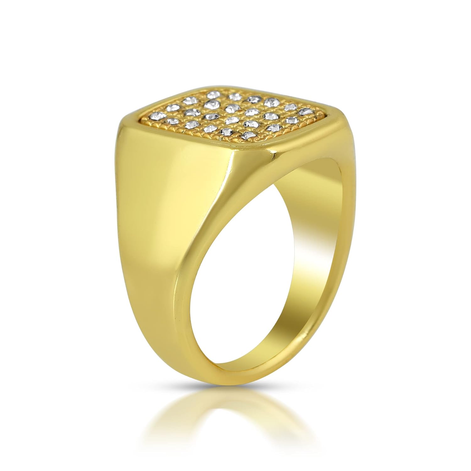 Crafted with Pure Heavy Silky finished, High gloss Brass and finished with 1 micron 24KT gold plating, this men’s ring boasts international quality and precision. This heavy-duty ring is adorned with top-quality white imitation diamonds, making it perfect for engagements, weddings, and other special occasions. Its silky finish ensures a luxurious feel. Instead of spending millions on real gold and diamonds, invest in this high-quality imitation jewelry and enjoy the same pride and joy. This top-class, rich-looking men’s jewelry piece is a must-have for any big event. Its excellent Men engagement, wedding, marriage purpose jewellery. It also is a rich looking birthday Anniversary gift to husband, brother and other male relatives and friends.