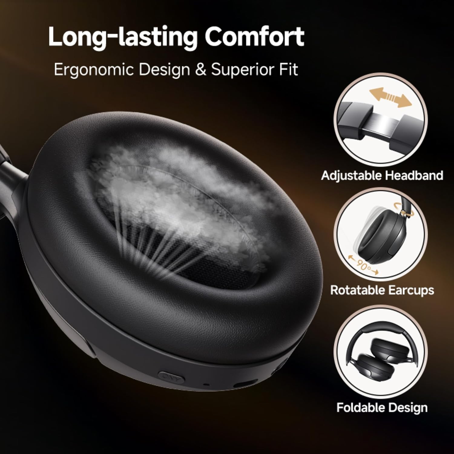 Experience studio-quality sound with Hi-Res LDAC audio, 40mm titanium drivers, and dual-chip processing for powerful, distortion-free music. Enjoy Hybrid ANC up to 50dB, 3D Spatial Audio, 3-Mic ENC calls, and 60ms low-latency gaming. Get 55H playback, fast charging (10min = 2H play), dual-device pairing, and Bluetooth 5.4 with IPX4 water resistance for nonstop entertainment