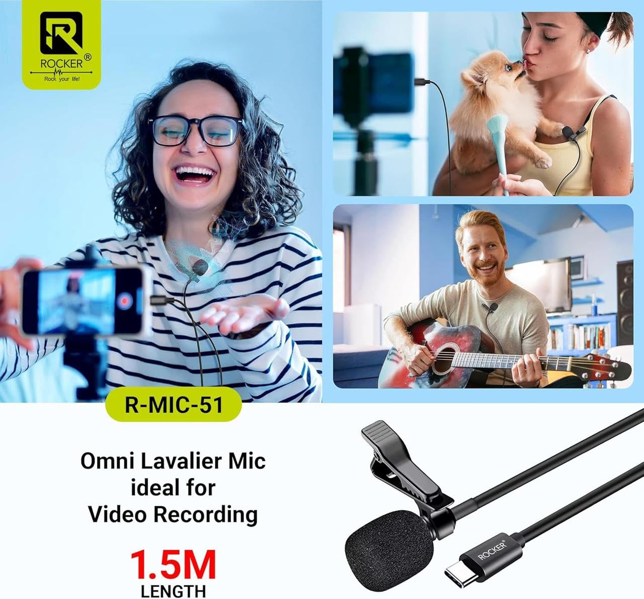 R-MIC-51 Type-C Lavalier Microphone Ee microphone vlogging, YouTube, reels, online class, interview, video recording okke use cheyyan perfect aanu. Clip-on (collar mic) design aayath kond shabdam clear aayi record cheyyam. Type-C wired connector direct aayi Android Type-C mobile-il connect cheyyam – app onnum install cheyyenda. Anti-interference technology ullath kond background noise kuranju clear audio kittum. 1.5 meter long cable ullath kond phone pocket-il vechum comfortable aayi record cheyyam. Lightweight & portable design – travel/vlogging inu easy. Best for: YouTubers, Vloggers, Online teachers, Content creators, Students.