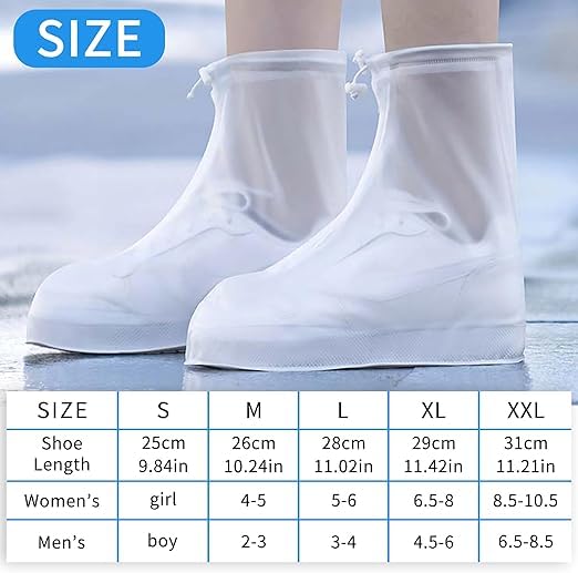 What Size Should Be Order: The shoe covers are not shoes, please measure the length of the sole before order, then refer the size chart to make sure the cover is 0.5″/1.3cm Larger than the usual sole, or 1″/2.7cm Larger than the bulky sole.