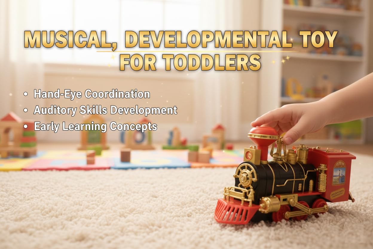 Musical,Developmental Toy for Toddlers – More Than Just a Toy, This Musical Train Set for Kids Supports Early Childhood Development. the Light and Sound Effects Stimulate Sensory Learning, While Assembling the Tracks Improves Hand-Eye Coordination and Fine Motor Skills. Encourages Imagination, Role Play, Creativity, Logical Thinking, and Social Interaction. Suitable as an Educational Toy Train for Toddlers, Preschool Kids, and Young Children Aged 3+ Years. a Perfect Combination of Fun and Learning in One Exciting Electric Railway Toy Set.