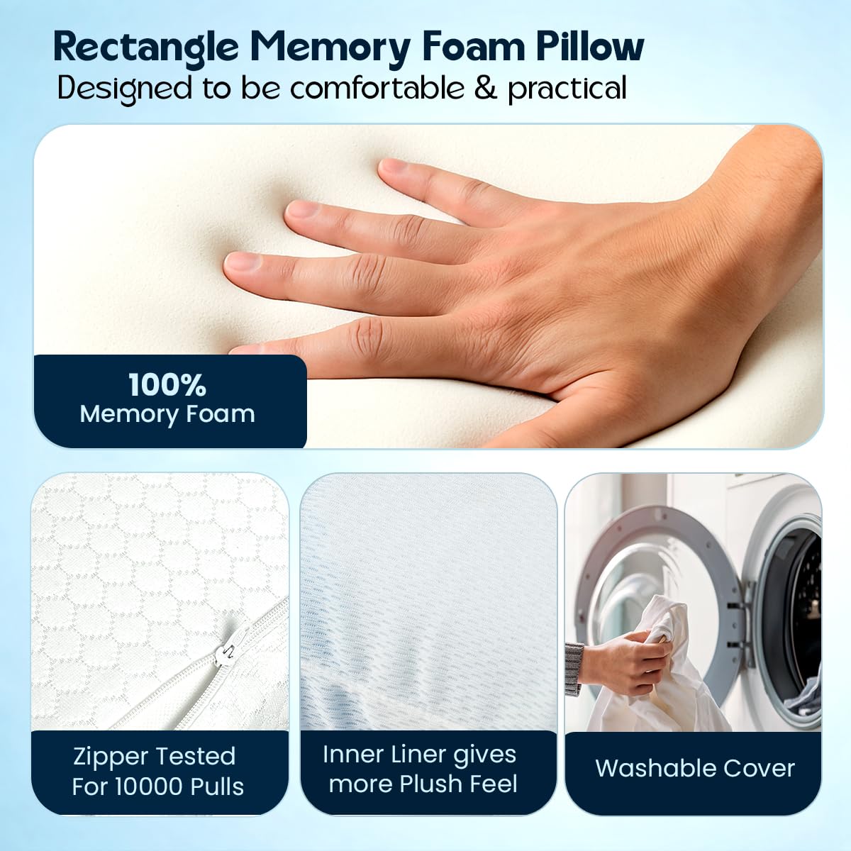 Rectangle Orthopedic Memory Foam Contour Pillow for Neck & Cervical Pain Relief | Ergonomic Neck Support for Back, Side & Stomach Sleepers | Washable Cotton Cover – White, 36 x 54 x 10 CM