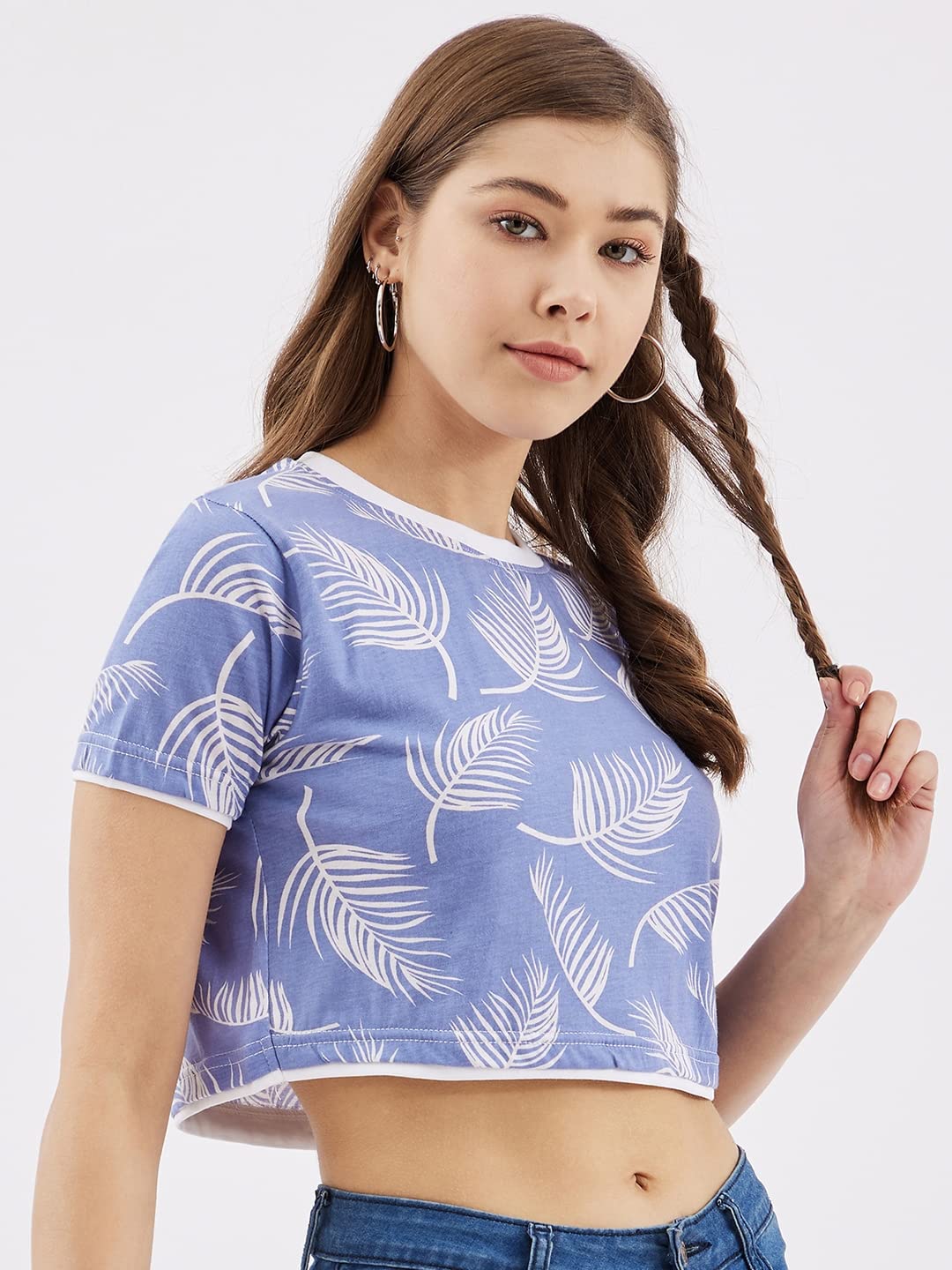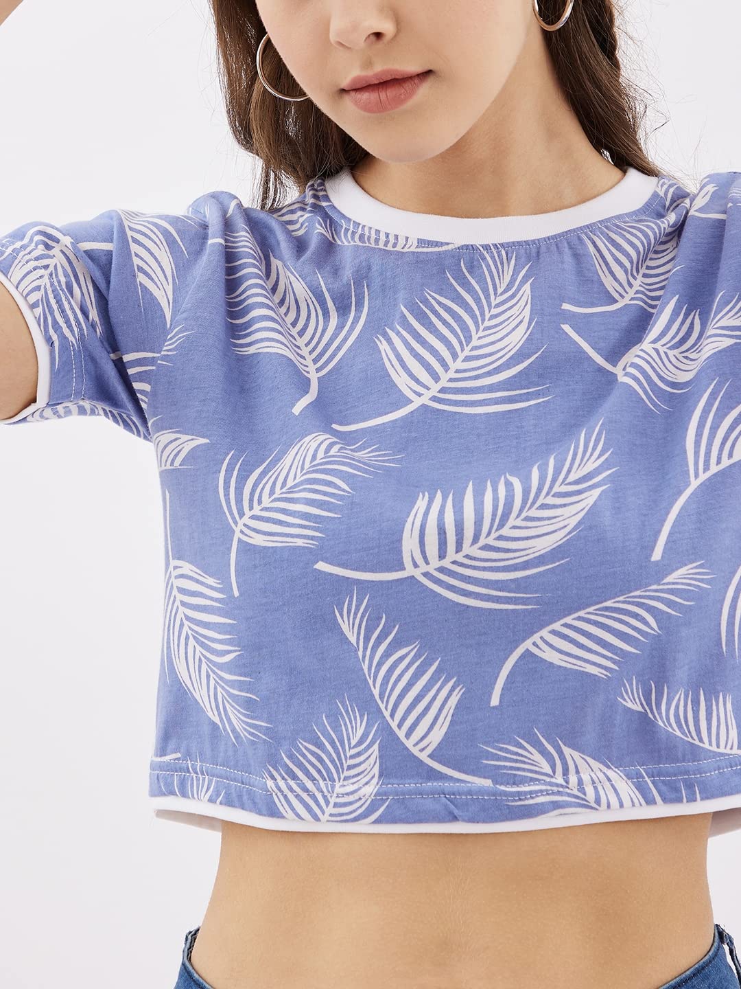 RodZen 100% Pure Cotton Half Sleeve All Over Printed Stylish Casual Crop Top & T-Shirt for Women/Girls