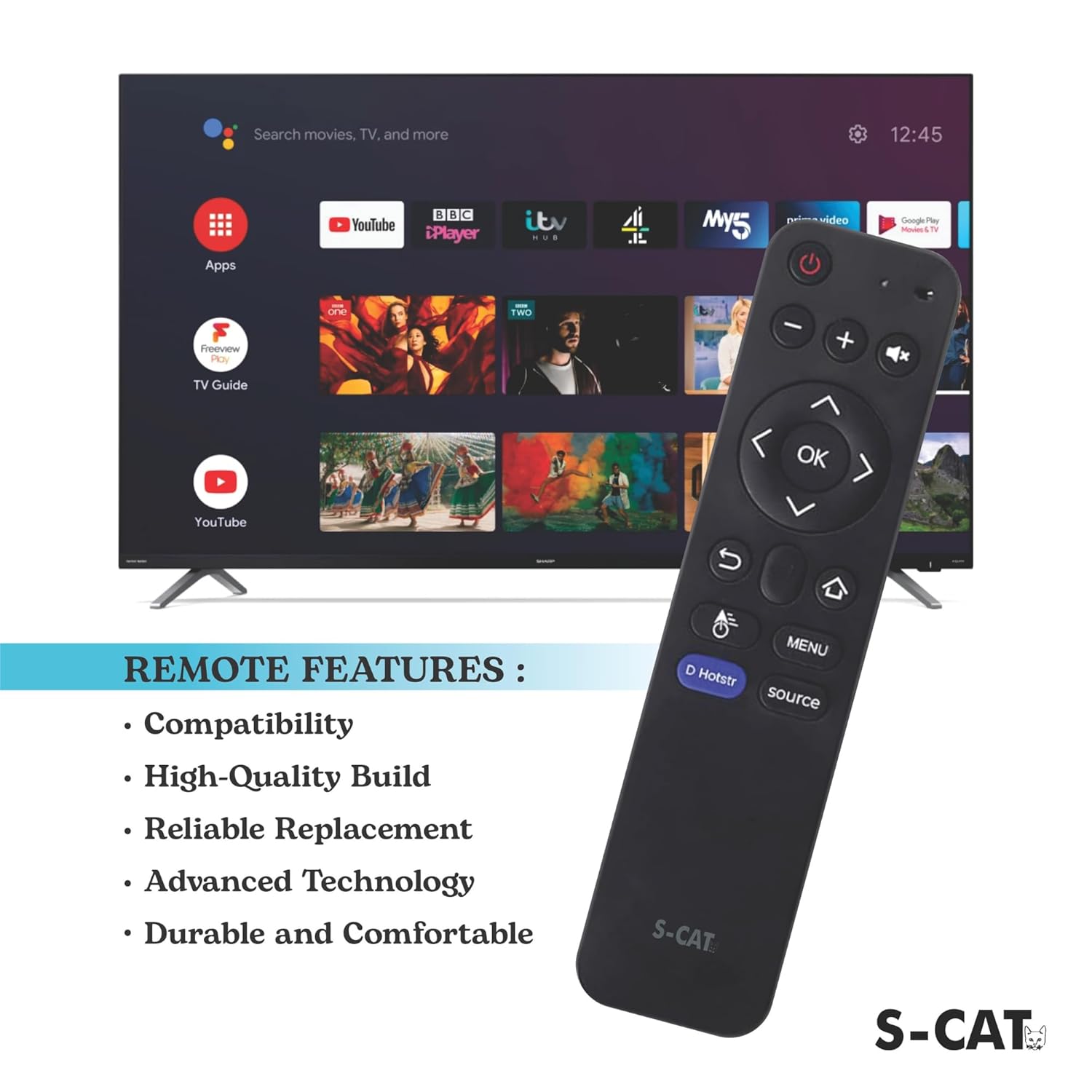 S-CAT Universal Compatible Remote for Micromax/Akai/Elista/Skytron/Hyundai 4K Ultra HD Smart TVs Without Voice Command (Match Old Remote Exactly, Contact Customer Care for Order)