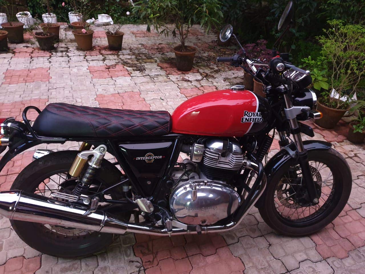 Sahara Seats Compatible with Interceptor650 Design Leatherette Seat Cover with Added Cushion (Black with Red)
