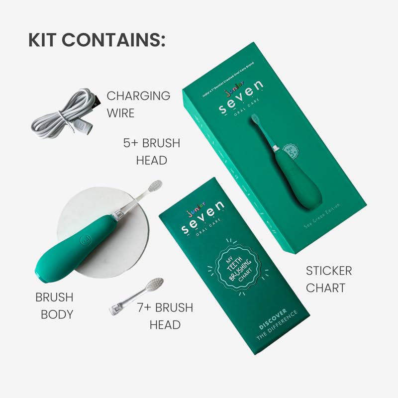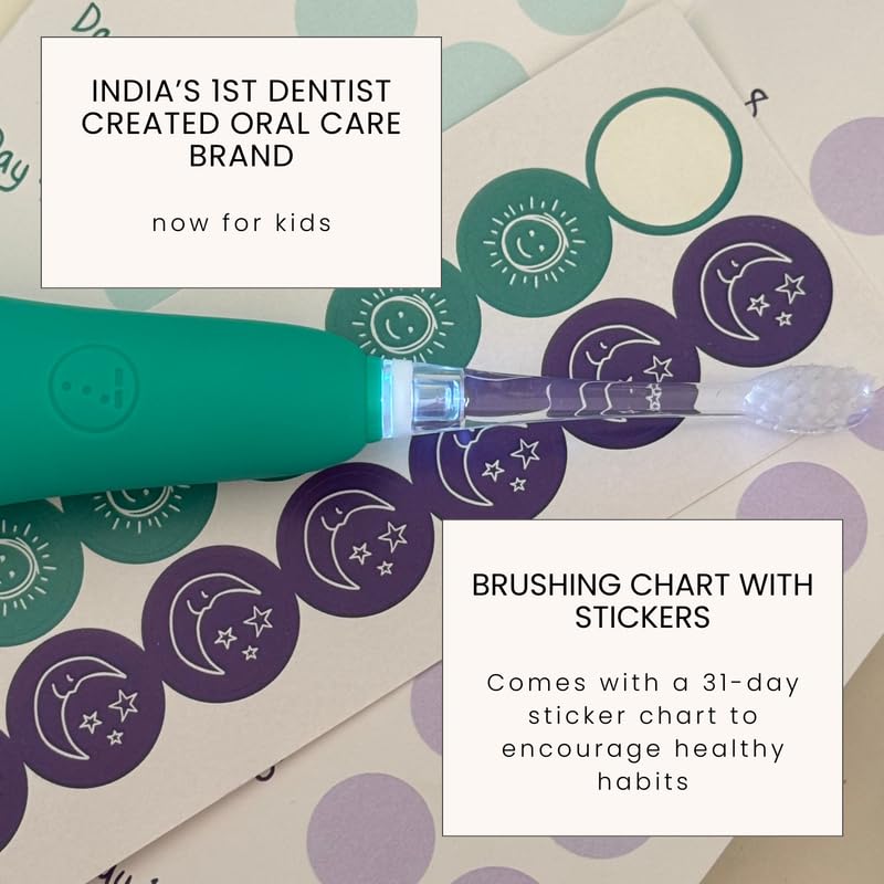 Seven Oral Care Kid’s Super Brush | Electric Toothbrush with Soft Bristles, Gentle Cleaning Action, Lightweight, Easy-to-Hold Handle, Healthy Oral Hygiene Habits- Sea Green