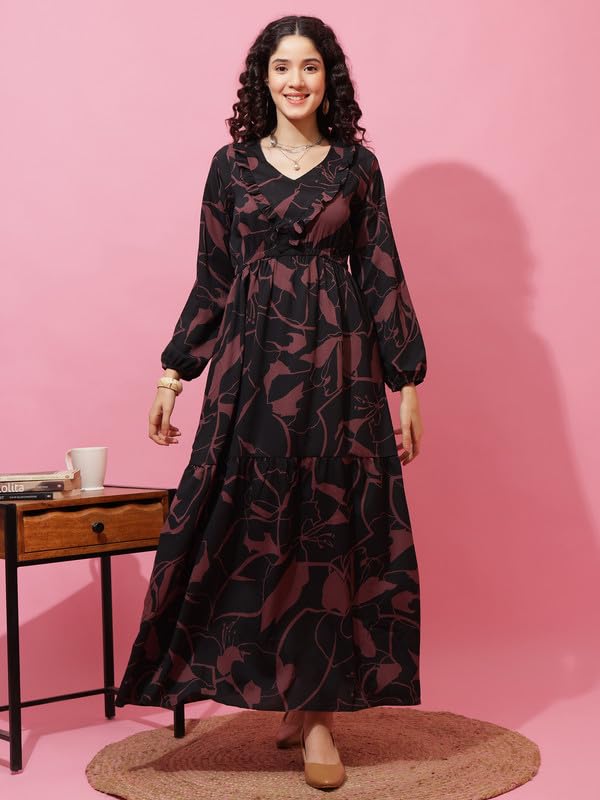 Sheetal Associates Women’s Floral Printed Empire Fit & Flare Maxi Dress| Comfortable Relaxed Fit Summer Dress