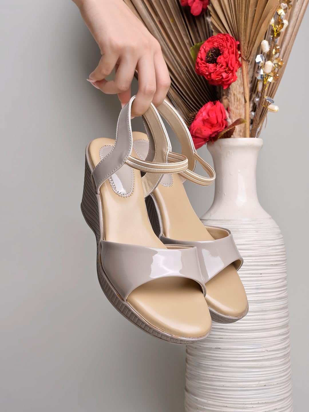 Shoetopia Stylish Wedges for Women – Comfortable Slip-On Sandals with Cushioned Sole & Elastic Back Strap Lightweight Heeled Slides