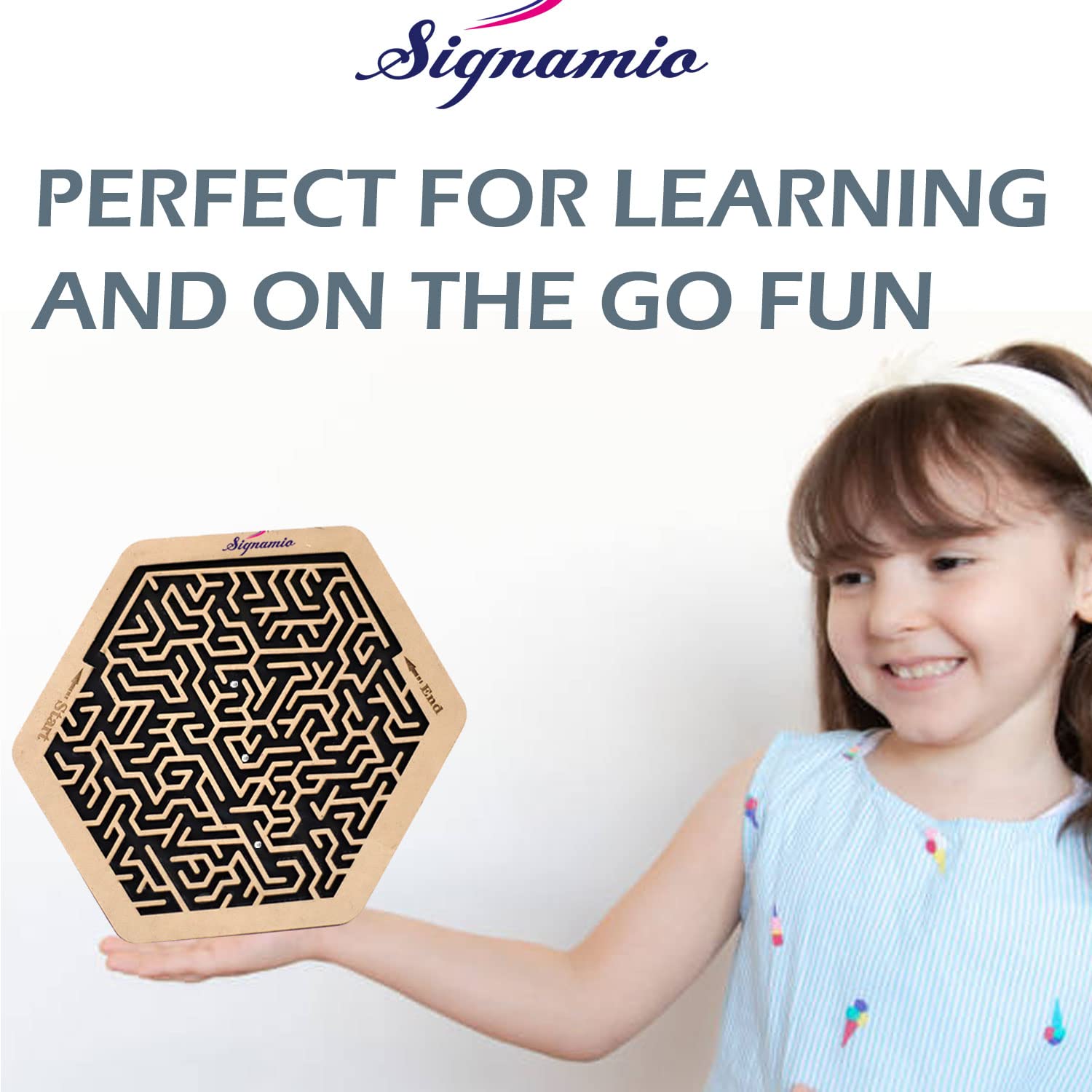The Signamio Hexagon Maze Ball time pass games is a versatile wooden labyrinth ball game, providing endless entertainment as a slide puzzle game and a gravity maze, ideal for family gatherings and solo play. Its size and features fit perfectly for a gift. Everyone can enjoy and use this to help them in learning, meditation, and concentration. The Puzzles are perfect for quiet time or travel. Travel games for kids in car, plane or take out to restaurant or picnic, easily play at anyplace or anytime.