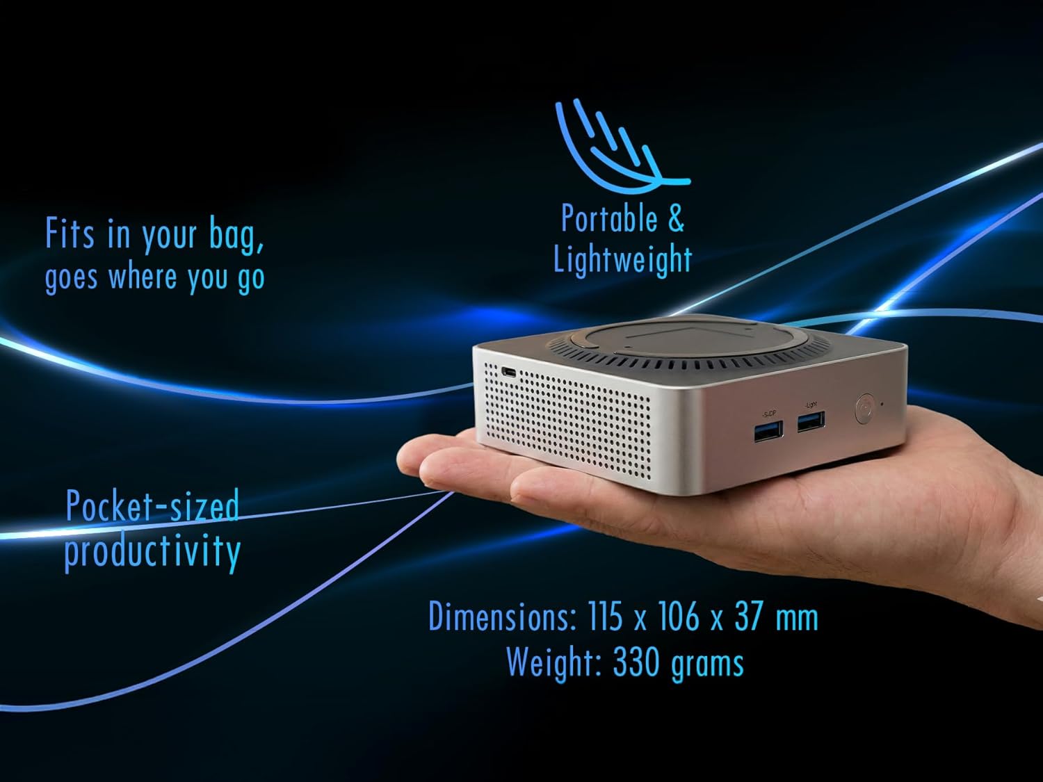 Designed for mobility, Mist Mini PC fits easily in your bag and goes wherever you work. With a compact 115 × 106 × 37 mm footprint and weighing just 330 grams, it delivers pocket-sized productivity—perfect for travel, home, office and flexible work setups.
