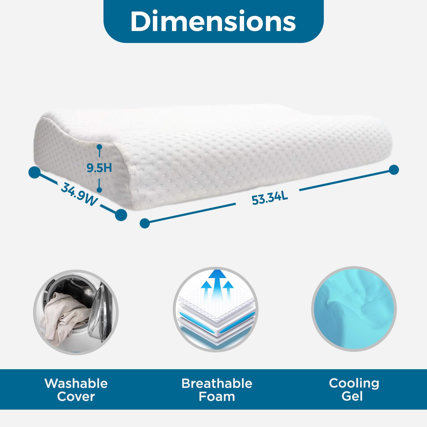 Sleepsia Breathable Cooling Gel Contour Memory Foam Pillow (21″X13.7″X3.7″) 1 Year Warranty | Neck Support Cervical Pillow for Pain – Orthopedic Ergonomic Support for Side, Back and Stomach Sleepers
