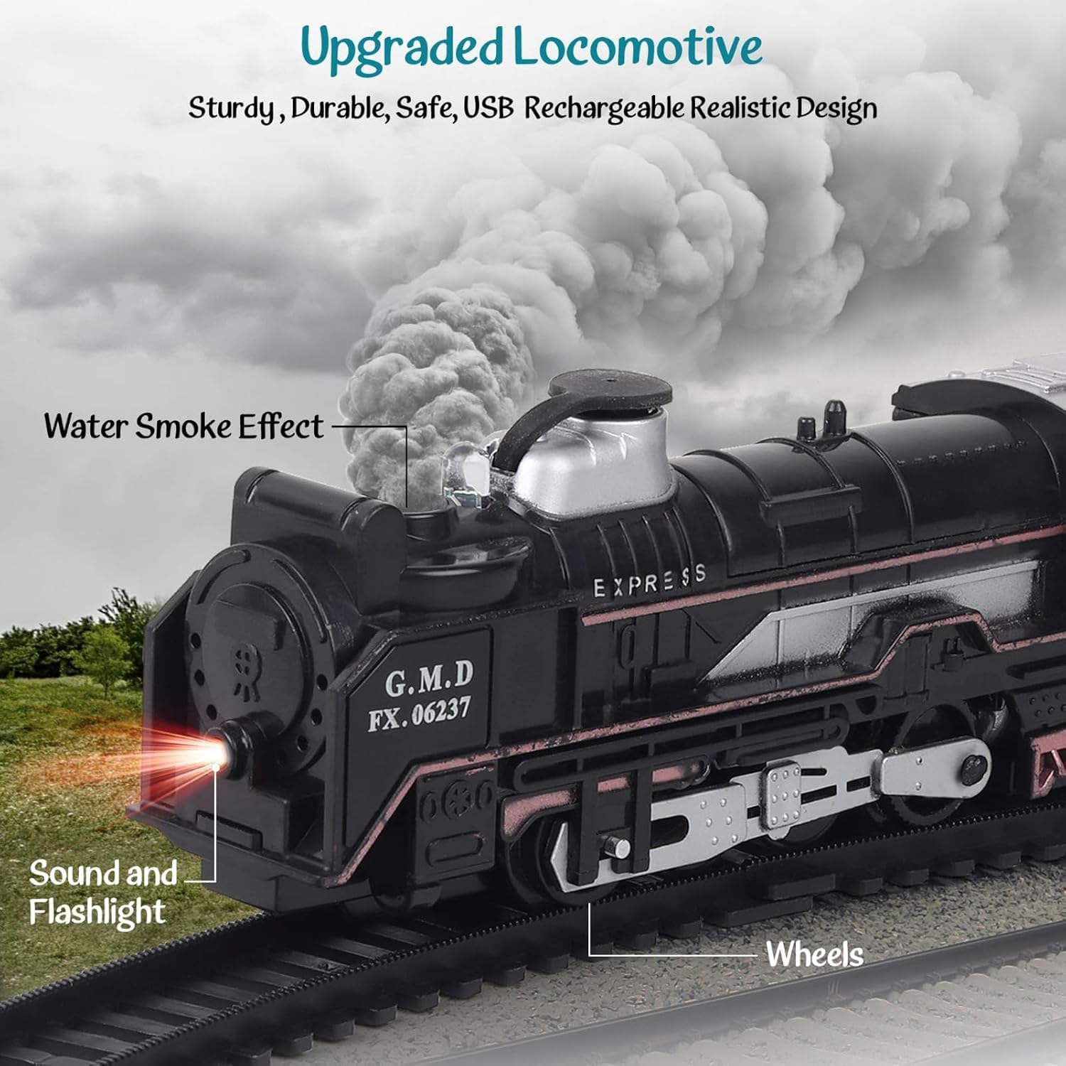 · Realistic Effect- Features colorful light, authentic train sound, and water based smoke for a lifelike play experience.