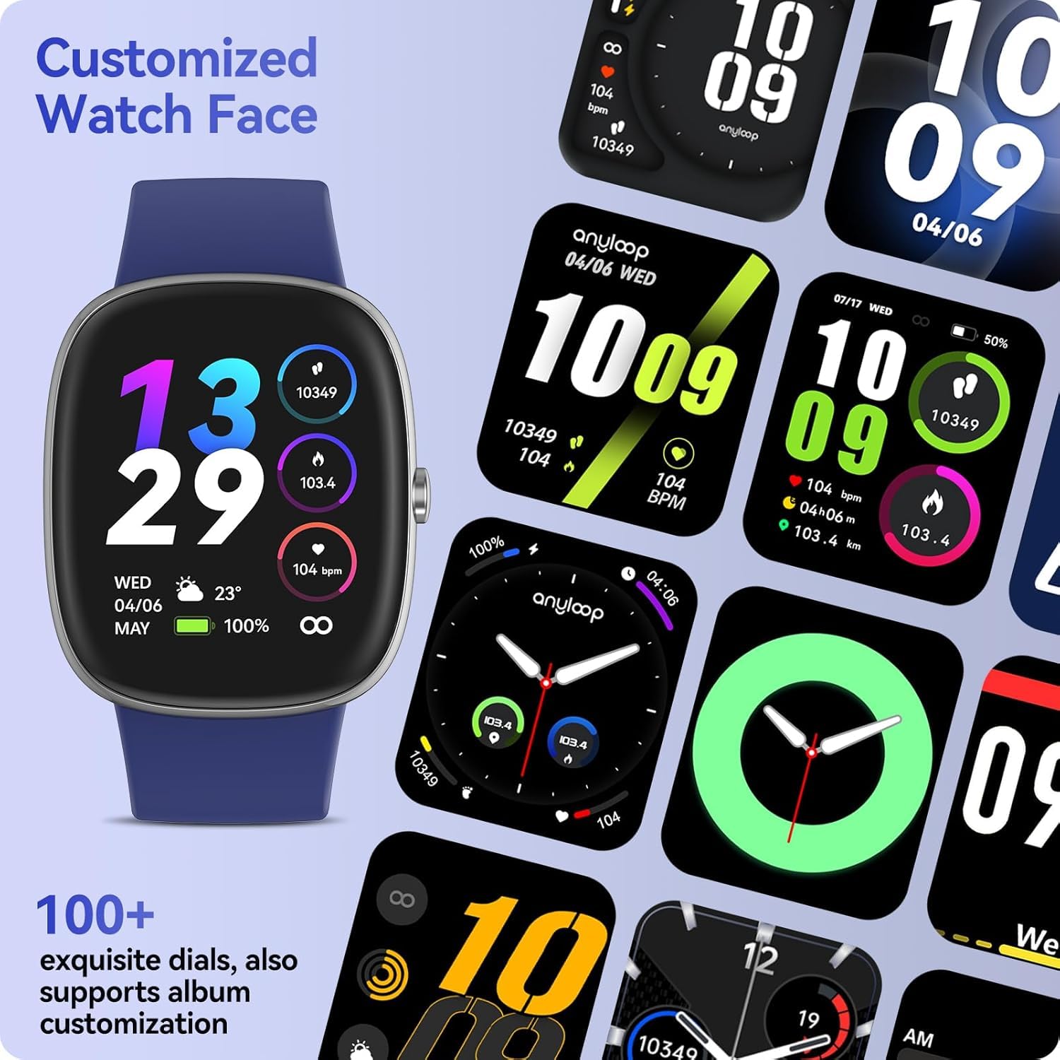Smart Watch(Answer/Make Call), 1.85” Amoled HD Smart Watches for Men Women, IP68 Waterproof Fitness Tracker with Heart Rate Blood Oxygen Sleep Monitor Step Calorie Counter Pedometer (Dark Blue)