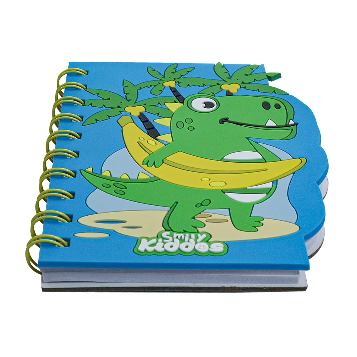 Smily Kiddos Spiral Notebook Beach Dino – Blue Spiral Notepad Wire Bound Spiral Embossed Notebook Wire Bound Spiral Notebooks for Kids