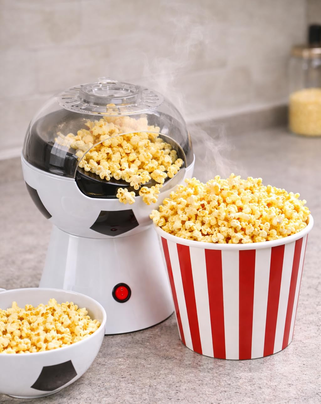 Soccer Ball Design Electric Popcorn Maker for Home Kitchen, Oil Free Hot Air Popcorn Machine with One Button Control, Compact Snack Appliance for Family & Kids
