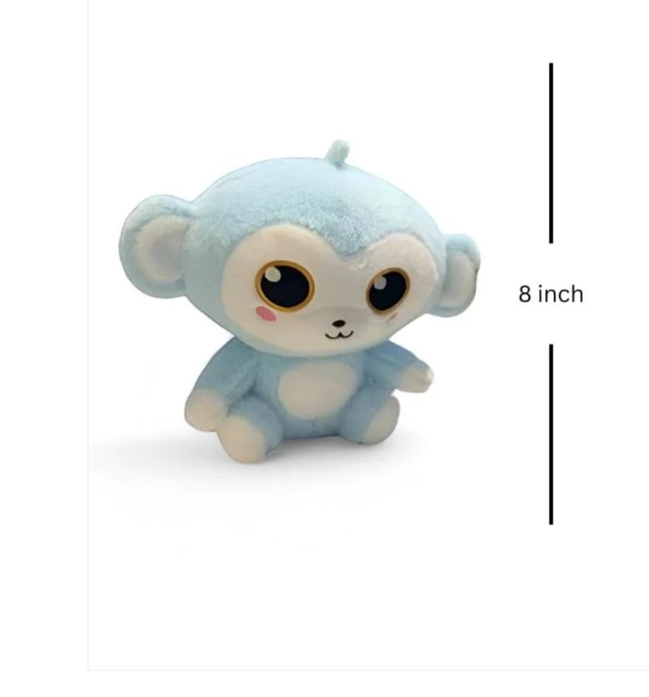 Introducing this adorable plush monkey stuffed animal in a delightful light blue and white colour combination. This charming soft toy features captivating large eyes that give it an irresistibly sweet expression. Made with premium soft materials, this cuddly companion is perfect for both playtime and display. The plush monkey’s gentle colour scheme makes it an excellent choice for any nursery or child’s room décor. Its huggable size and ultra-soft texture provide comfort and companionship to children of all ages. The thoughtful design includes carefully stitched details and high-quality construction for lasting durability. This lovable stuffed monkey makes for a wonderful gift option for birthdays, holidays, or any special occasion. The plush toy’s gentle features and soft materials ensure safe playtime experiences. Whether used as a bedtime companion or a decorative accent, this charming monkey plush brings warmth and character to any space.