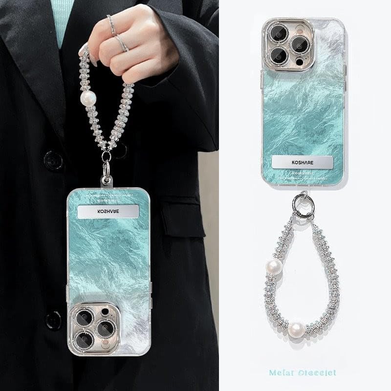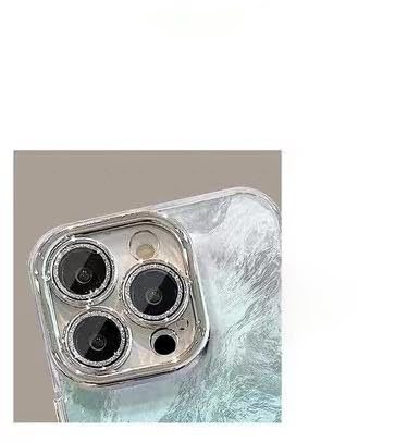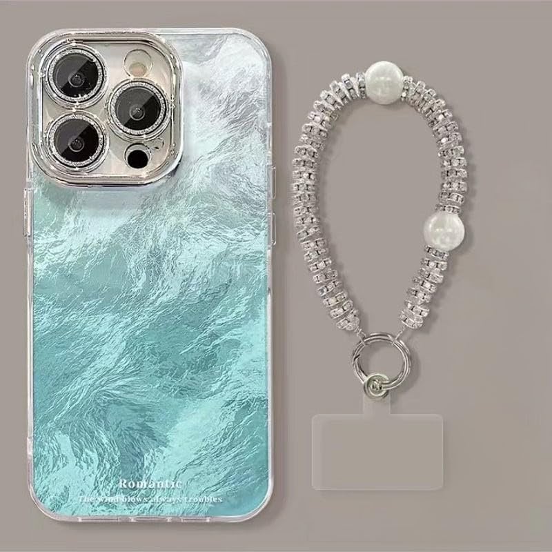Soft TPU Camera Lens Protection Diamond Bling Silver Luxury Shockproof Case for iPhone 15 Pro Max | Transparent Stylish Back Cover with Wave Texture Design | Slim, Protective & Lightweigh (Blue)