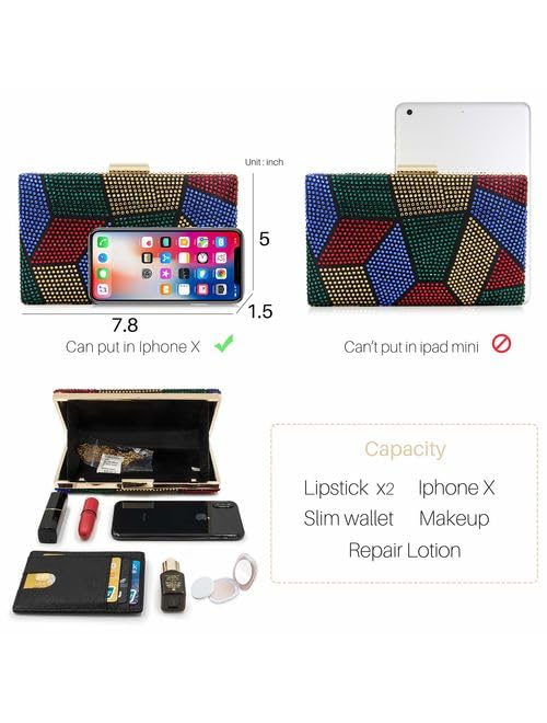 Sparkling Multicolorded Rhinestone Evening Clutch Handbag Cocktail Crystal Clutch Purses Prom For Women