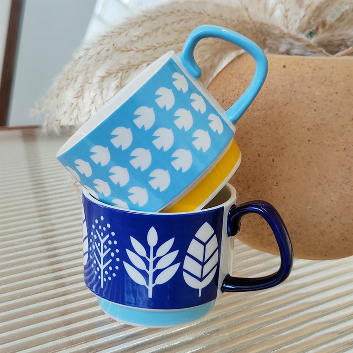 𝐂𝐫𝐞𝐚𝐭𝐢𝐯𝐞 𝐒𝐭𝐚𝐜𝐤𝐚𝐛𝐥𝐞 𝐃𝐞𝐬𝐢𝐠𝐧 – These mugs are designed to be stackable, saving space in your kitchen or café while adding a uniform, cozy look to your mug collection.