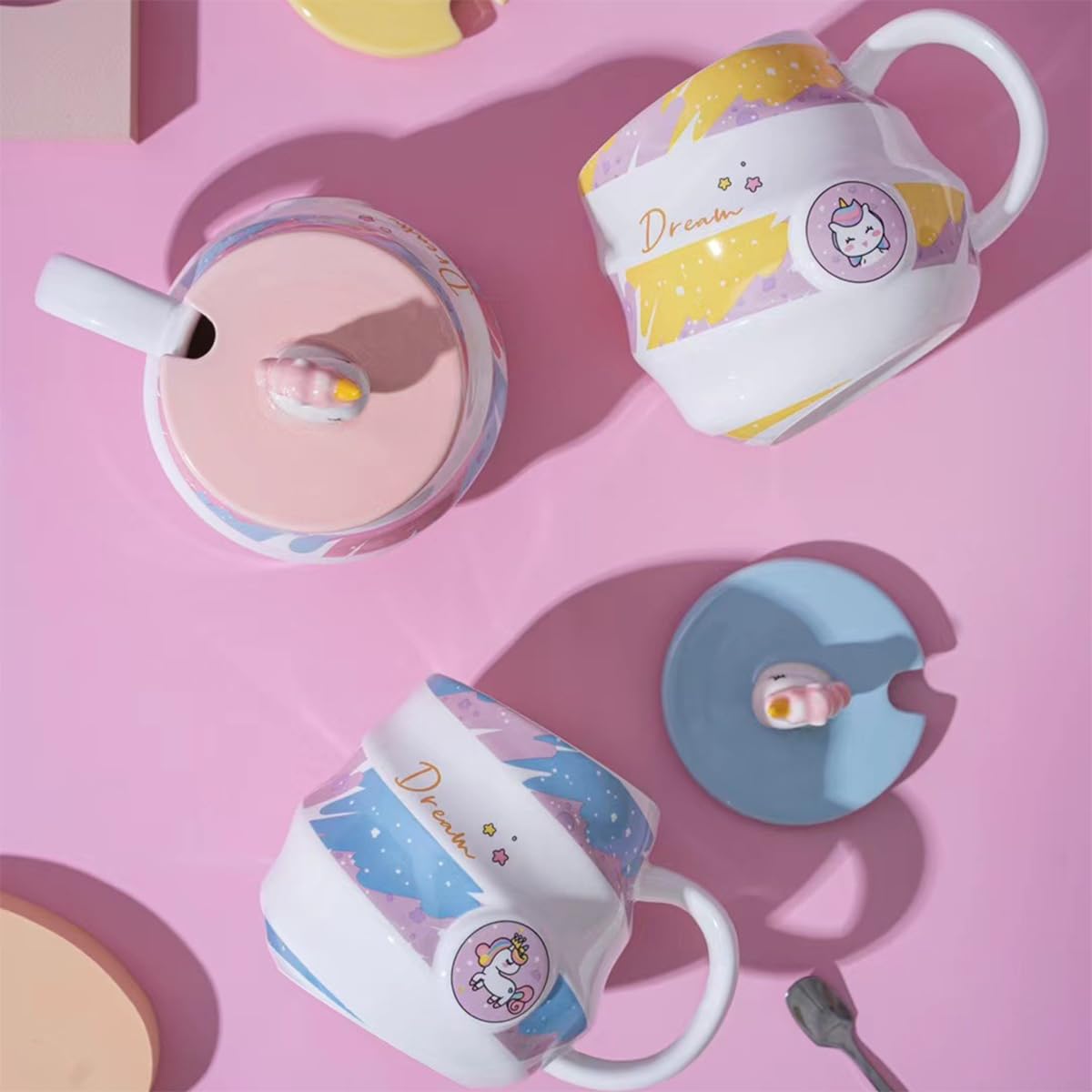 𝐀𝐝𝐨𝐫𝐚𝐛𝐥𝐞 𝐔𝐧𝐢𝐜𝐨𝐫𝐧 𝐂𝐚𝐫𝐭𝐨𝐨𝐧 𝐃𝐞𝐬𝐢𝐠𝐧 – Features a vibrant, personality-filled unicorn print in yellow, blue, or pink. A perfect companion for cozy mornings or desk-side tea breaks.