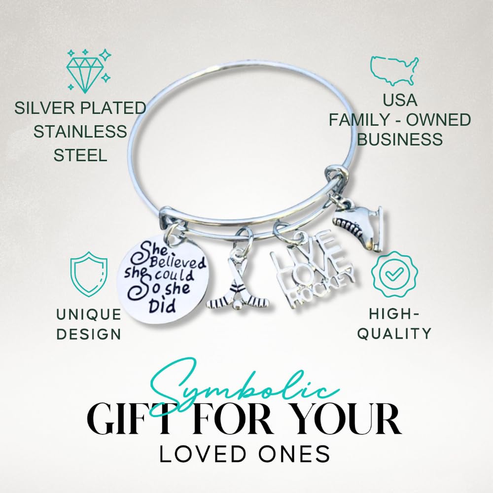 Sportybella Hockey Bracelet, Girls Hockey Jewelry- Ice Hockey She Believed She Could So She Did Bangle Bracelet for Hockey Players
