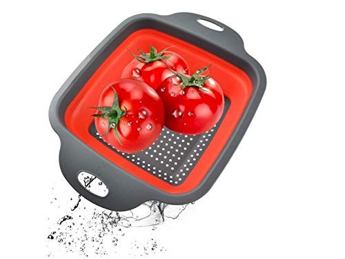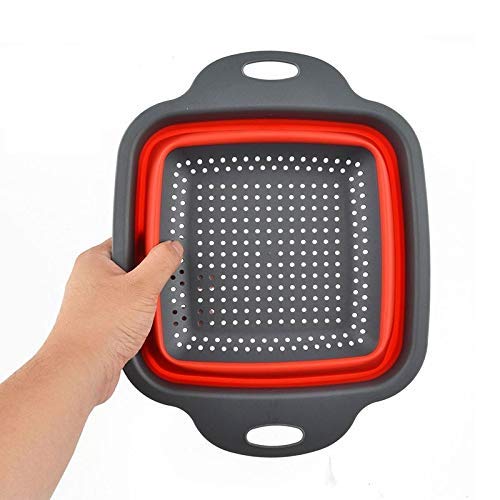 NIDY Square Folding Colander Washing Drain Basket Silicone Filter Baskets Washing Up Bowl Collapsible Colander Washing Up Bowl