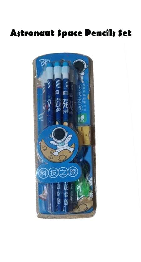 COMPLETE SET: 12-piece stationery kit includes HB pencils, pencil sharpener, eraser, and pencil caps in random colours and designs