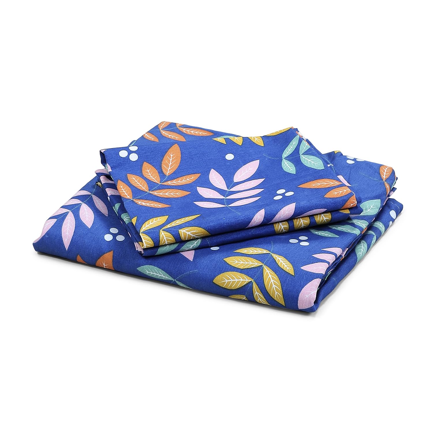 Status Contract -Cotton Rich Double Bedsheet with 2 Pillow Covers for Bed Room, Home, Hotel-120 GSM (Blue Leaves)