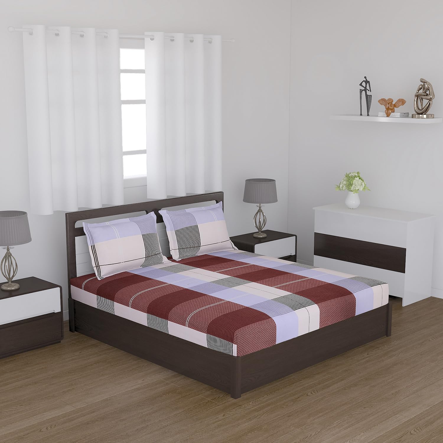 Luxurious Cotton Feel: Drift into a realm of unparalleled comfort with our cotton-feel double bedsheet set, meticulously crafted to replicate the luxurious texture of cotton. Paired with two pillow covers, this set not only ensures a coordinated look but also offers a plush, inviting surface for your ultimate relaxation.