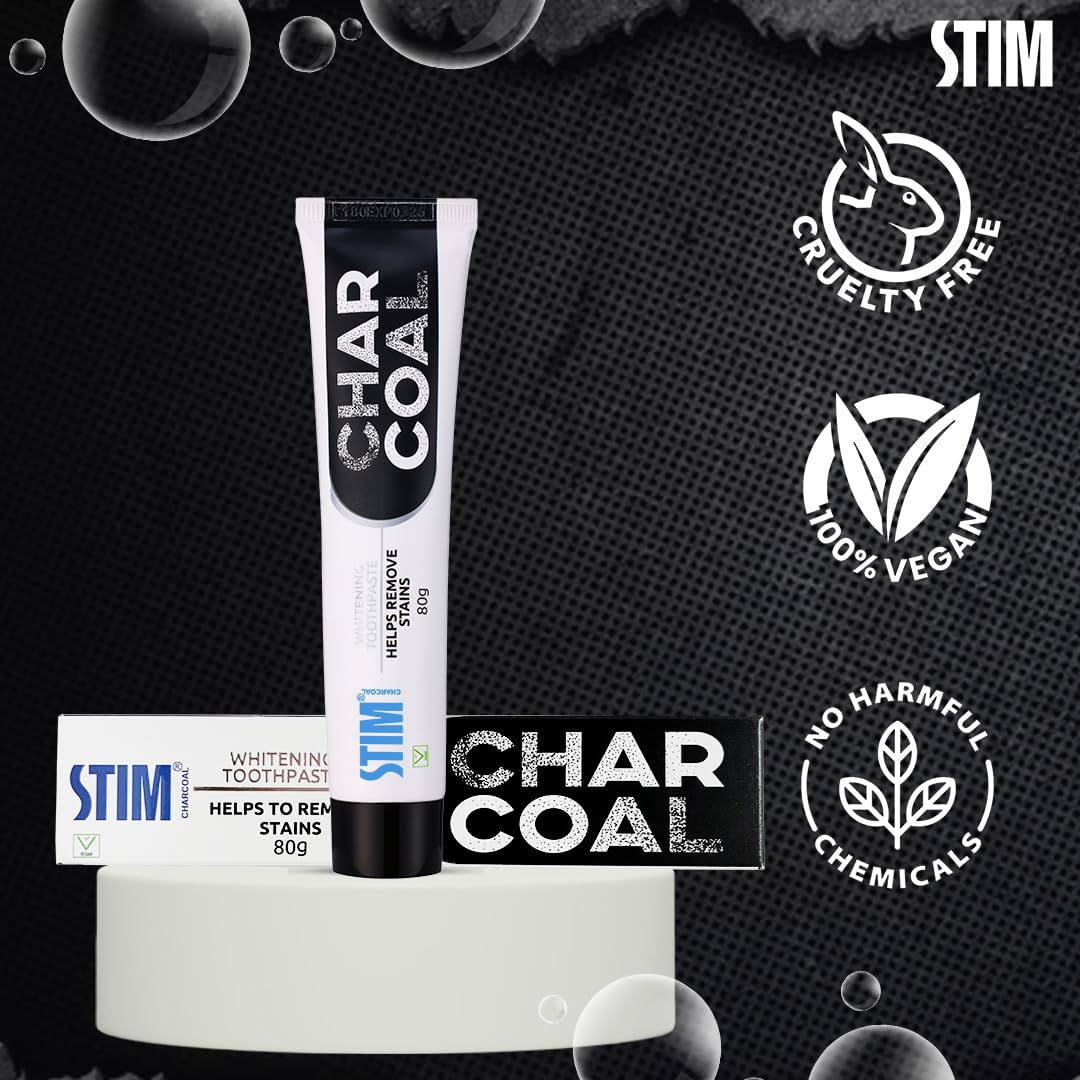 STIM Charcoal Toothpaste | Teeth Whitening with Activated Charcoal | Enamel Safe with Fluoride Protection | Fresh Breath | Dentist Recommended – Pack of 2