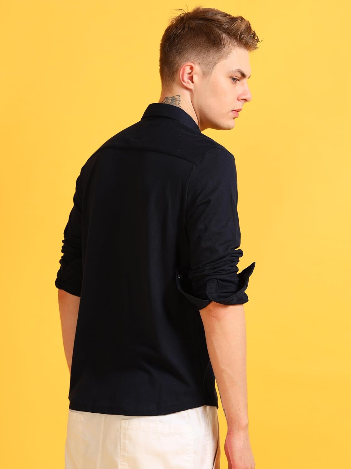 StitchX Men’s Cotton Pique Regular Fit Full Sleeve Solid Knitted Shirt S-2XL