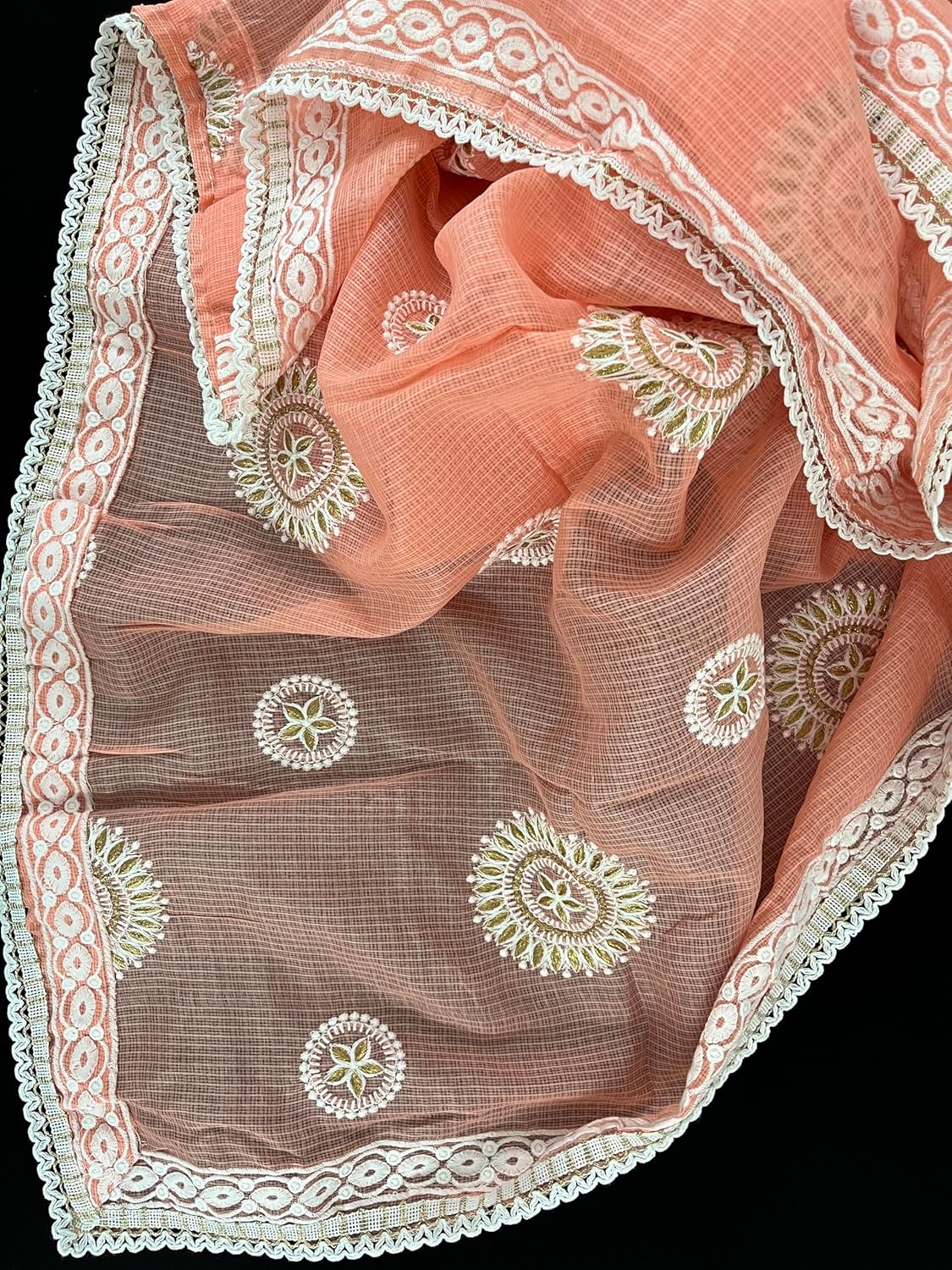 STOLE MATE END OF SEASON SALE ! Women’s Pastel Orange, Kota Embroidered Dupatta (SM23004)
