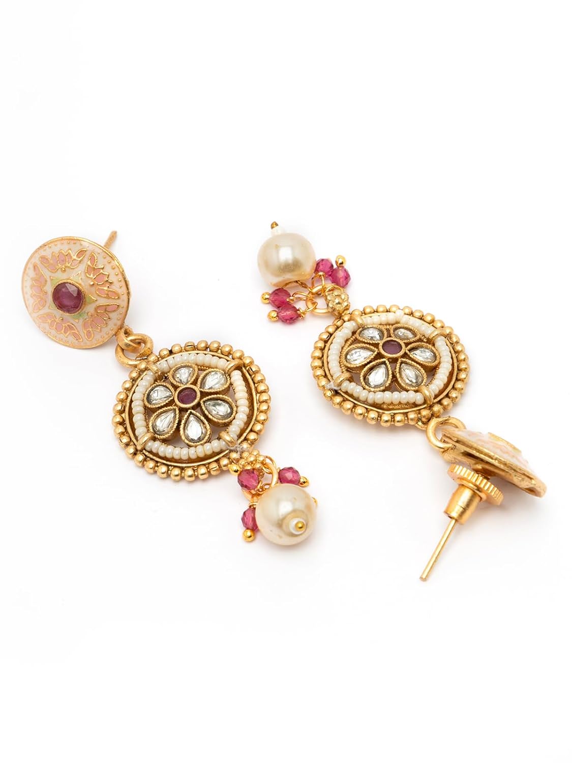 Sukkhi Charming Gold Plated Kundan Studded With Meenakari Work Round Choker Necklace Set with Dangle Earring Jewellery For Women|NS106979