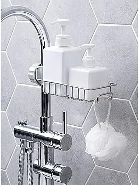 SWIPE N SEE Stainless Steel Kitchen Sink Organizer, Sink Caddy Organizer, Tap Organiser Clip Storage Rack Practical Home & Kitchen Drain Rack with Towel Holder for Soap