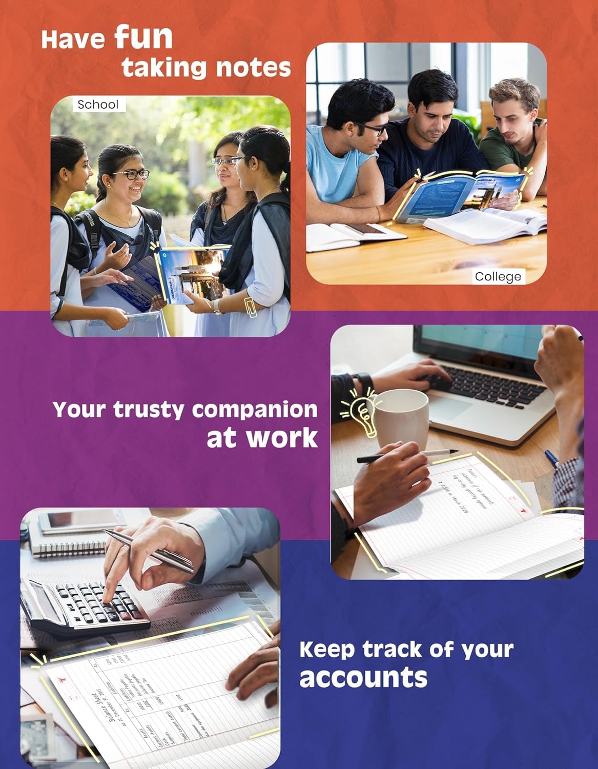 These multi-purpose notebooks are perfect for college students, school students, shopkeepers, accountants, homemakers and professionals.