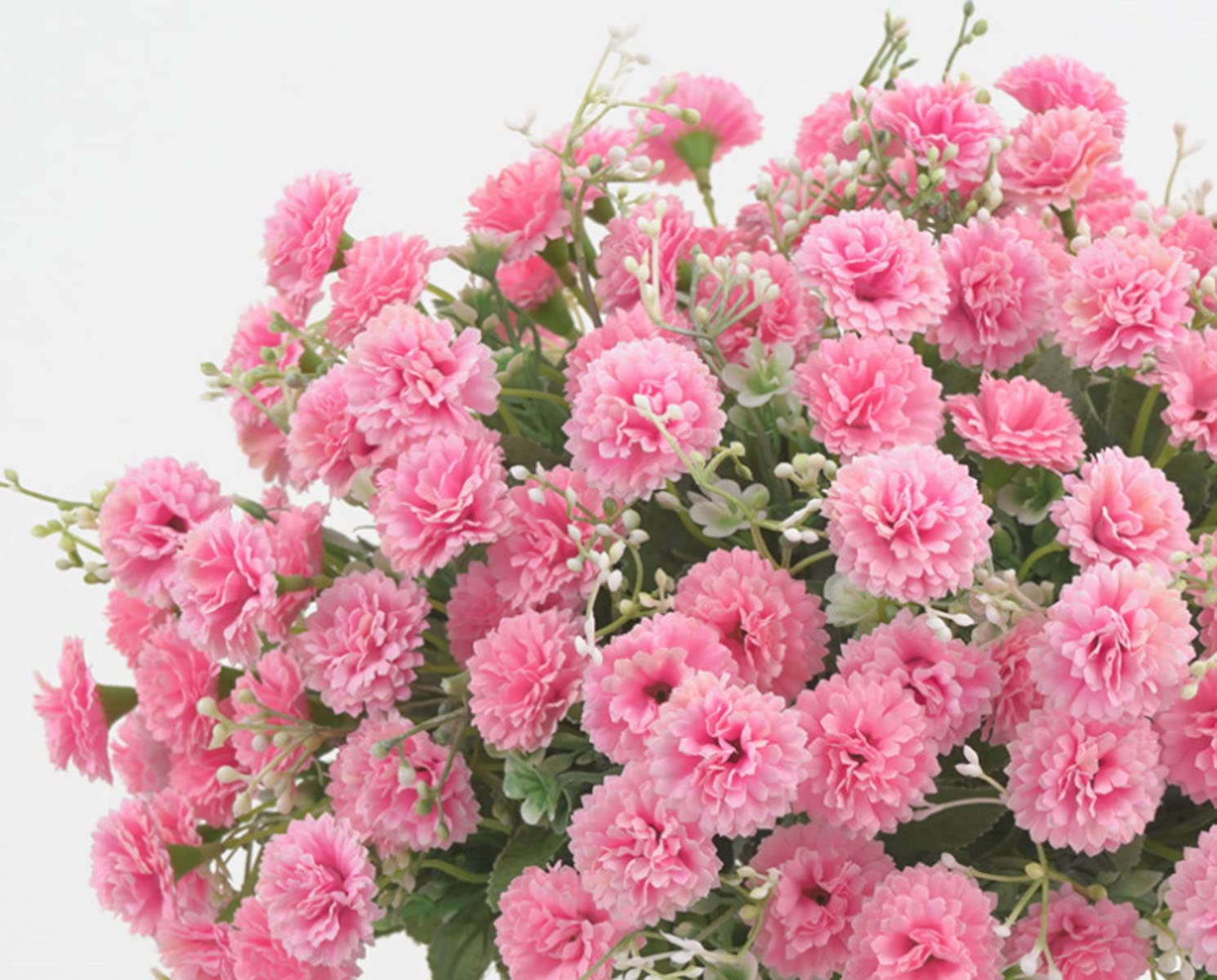 Package Includes: 2 pack faux carnation flowers. Each bouquet has 5 stems with 20 flowers.