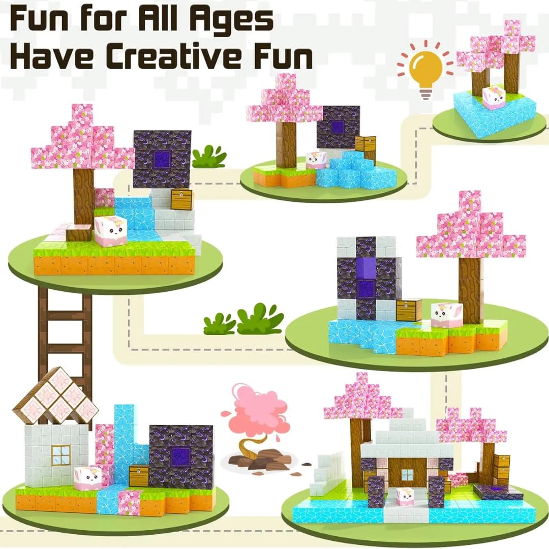 TechMax Solution Magnetic Blocks – Build Magnet World Magic Portal Set, Magnetic Tiles Building Blocks Toddler Toys STEM Sensory Outdoor Toys (Cherry Blossom, 126, Piece)