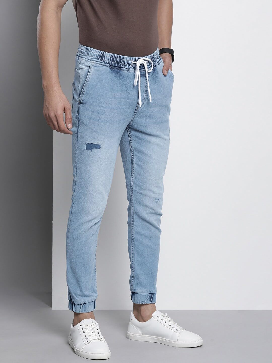 The Indian Garage Co Men Slim Fit Solid Mid-Rise Stretchable Denim Joggers