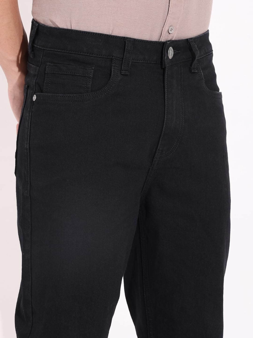 The Indian Garage Co. slim straight fit jeans for men blend a tailored look with stretchable comfort. Featuring 5 scoop pockets and a mid-rise waist with a secure button closure, these jeans offer both style and practicality. The regular length and straight hemline create a clean, versatile finish suitable for any occasion. Crafted from solid fabric, they provide durability alongside a sleek, modern silhouette—perfect for everyday wear.