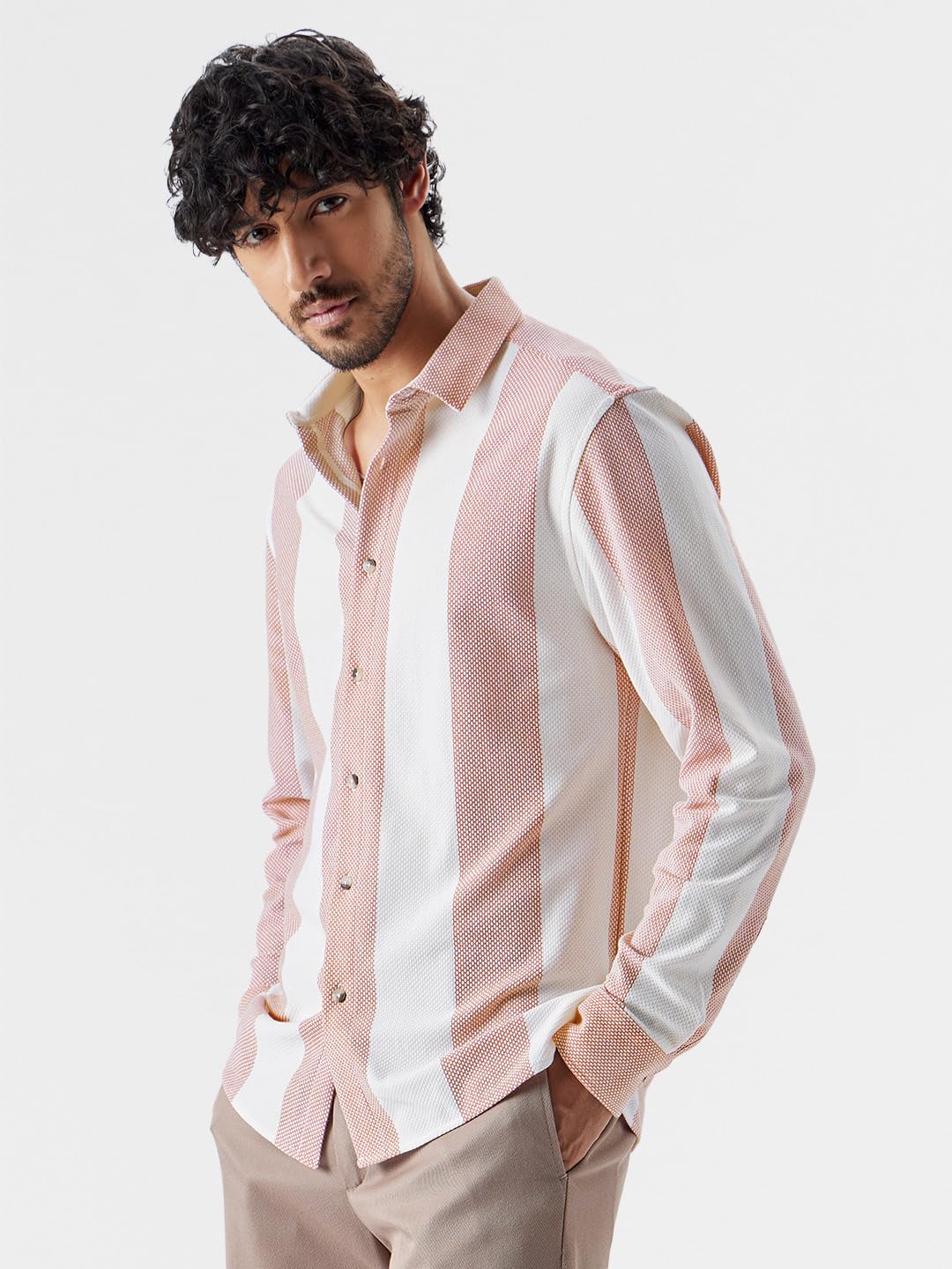 The Souled Store Men Stripes: White and Red Knit Shirt